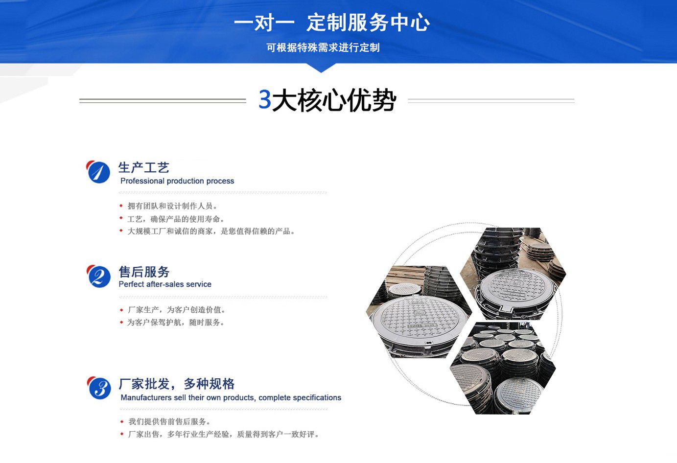 山東聊城健暉鑄造有限公司主營各種球墨鑄鐵井蓋,球墨鑄鐵防盜井蓋,球墨鑄鐵方形井蓋,球墨鑄鐵井蓋廠家等產(chǎn)品,可廣泛應(yīng)用于市政建設(shè)、軌道交通設(shè)施、城市園林綠化、安防配套設(shè)施、石油化工等諸多領(lǐng)域?! ‘a(chǎn)品采用良好的工藝流程,以確保產(chǎn)品質(zhì)量的穩(wěn)定性:以良好的檢測設(shè)備,確保質(zhì)量的可靠性。廣泛應(yīng)用于國內(nèi)外城市的市政建設(shè),通信,自來水,消防,園林,環(huán)保等行業(yè),產(chǎn)品大獲贊譽! 我們堅持“質(zhì)量為本、用戶至上、科技創(chuàng)新、科學管理”的經(jīng)營方針。 面向未來,我們積極響應(yīng)新時代的號召,走“一帶一路”、堅持“綠色環(huán)?!钡膰曳结樥?,秉承“安甄致選,普利天下”的企業(yè)理念,共同鑄就新時代的輝煌篇章。...